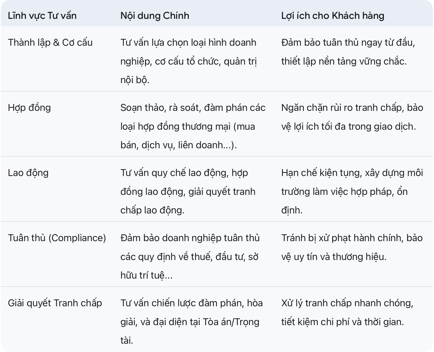 • Giải pháp Thực tiễn: Tư vấn không chỉ để tuân thủ, mà còn để tối ưu hóa lợi ích của Khách hàng.